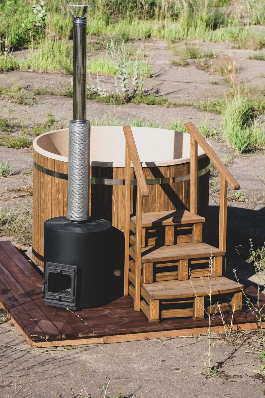 Если в силу каких-то причин вам необходимо утопить фурако полностью в террасу, то у нас для таких задач есть специальная модель фурако из нержавеющей стали. Для всех других случеев мы рекомендуем подымать фурако над террасойна уровне400 – 600 мм.