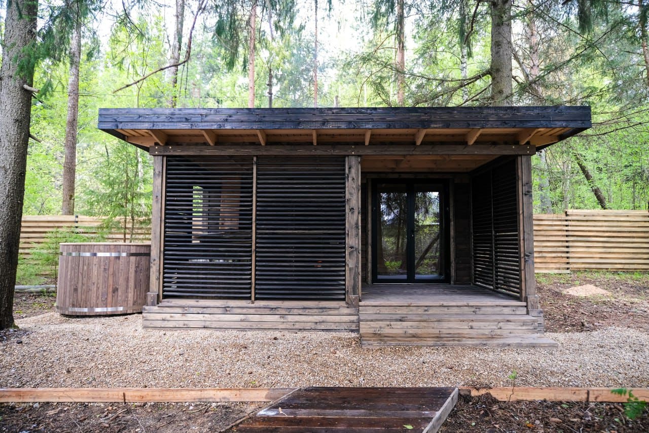 Из древесных пород для фасадов купелей используются в основном сосна, ель, лиственница, кедровая сосна (кедр), термодревесина, дуб.